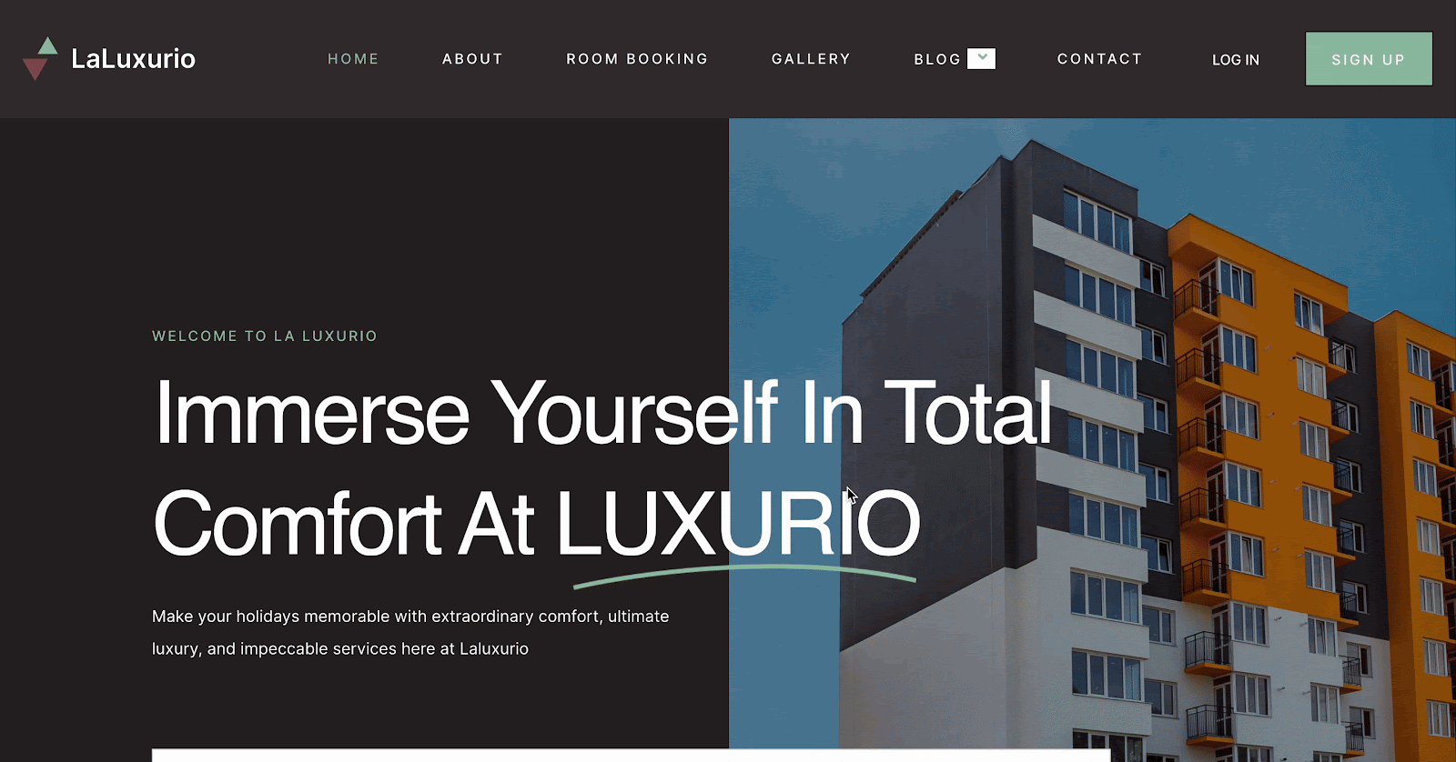 ✈️ LaLuxurio: While traveling, travelers are looking for a comfortable stay. Your clients might be the best solution for this. But they need to showcase them on their websites to attract more tourists. That is where LaLuxurio comes in. With its minimal design, it makes a complete solution for your clients.